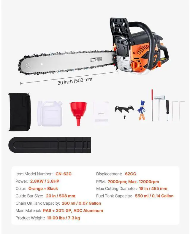 Guide Bar Size: 20 in / 508 mm