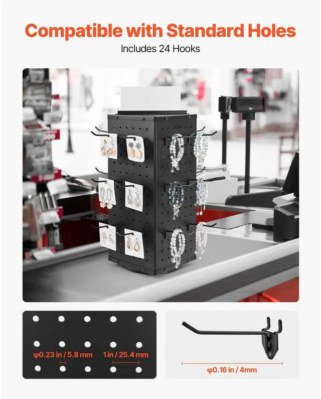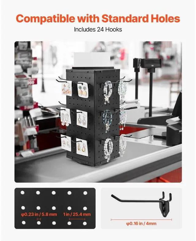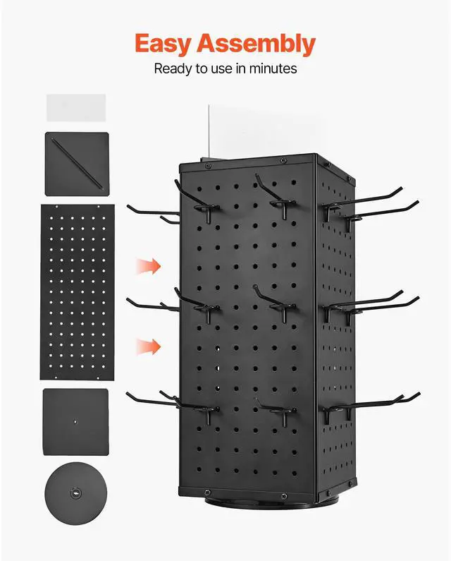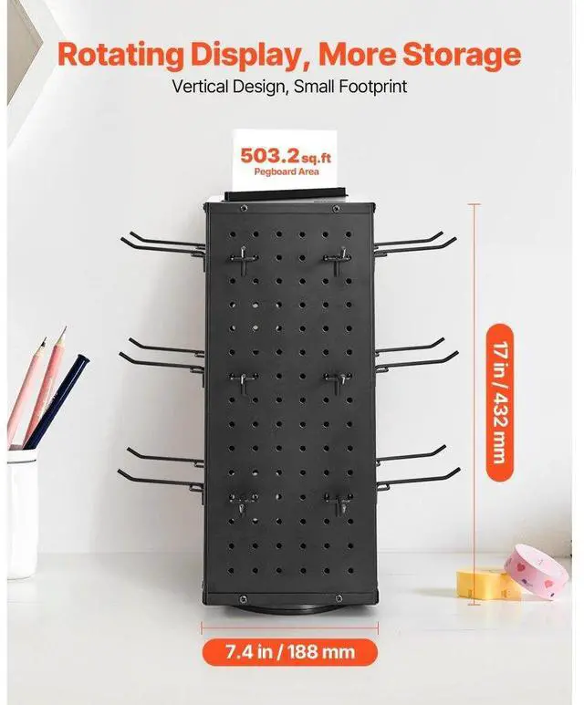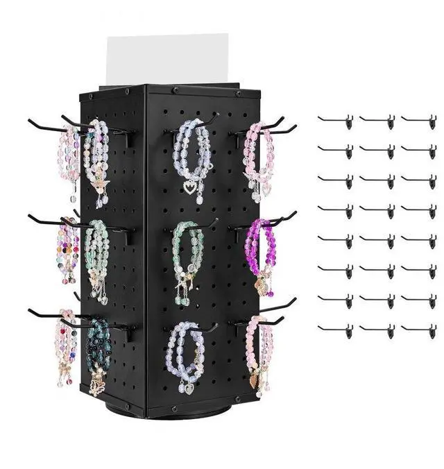 • Rotating Pegboard Display 4-Sided Spinning Peg Board Display with 24 Hooks Black