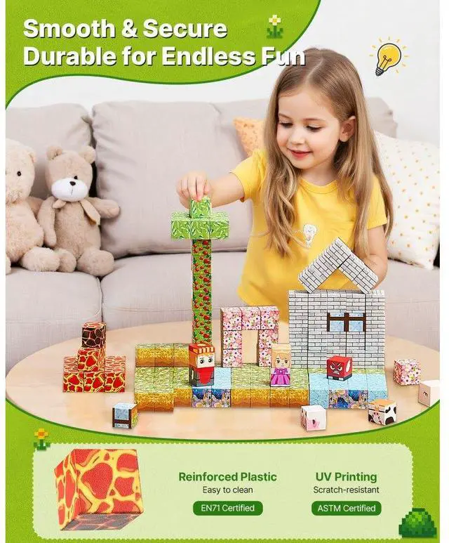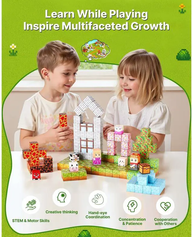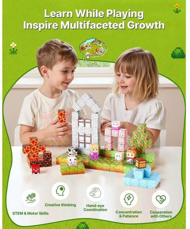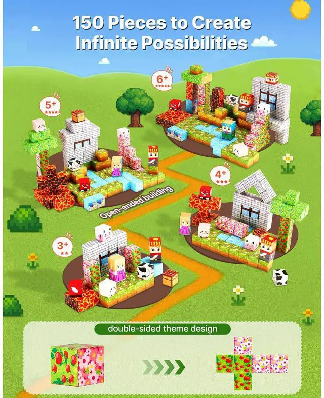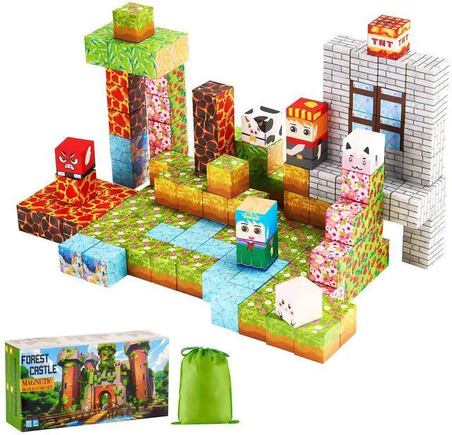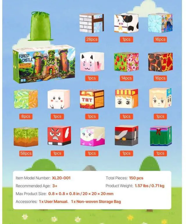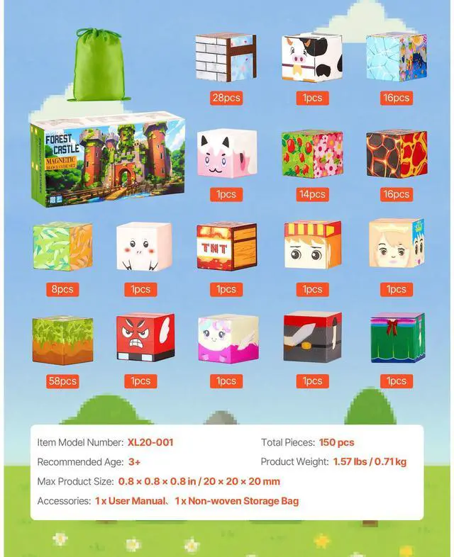 VEVOR Magnetic Blocks 150 PCS Forest Castle Set STEM Montessori Sensory Toys Versatile Fun Durable Magnets Learning Through Play Secure to Play Convenient Storage Ideal Gift