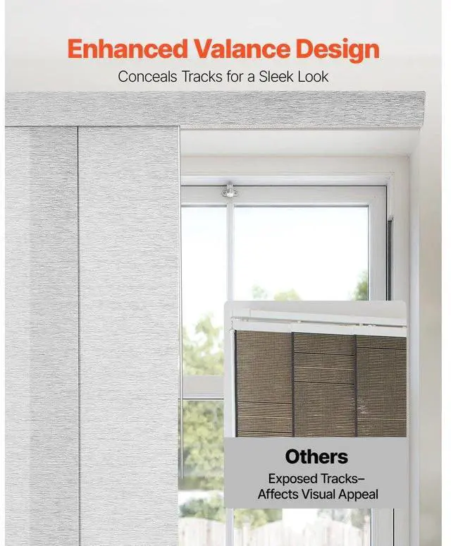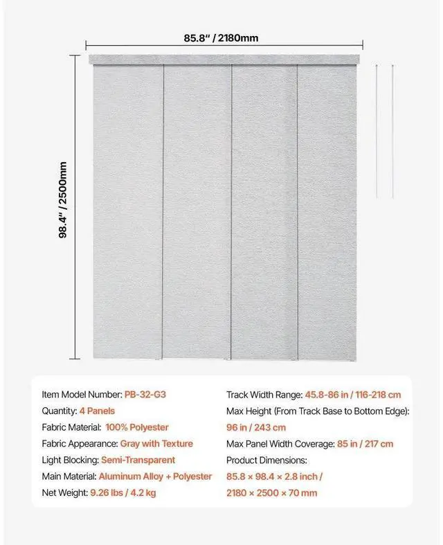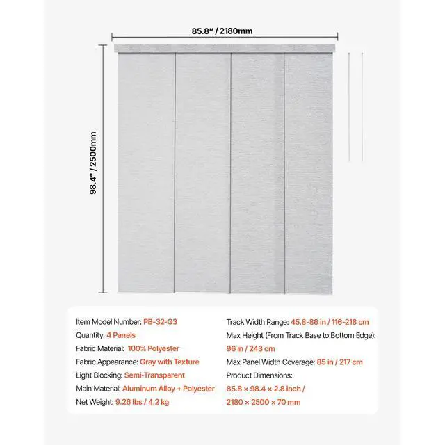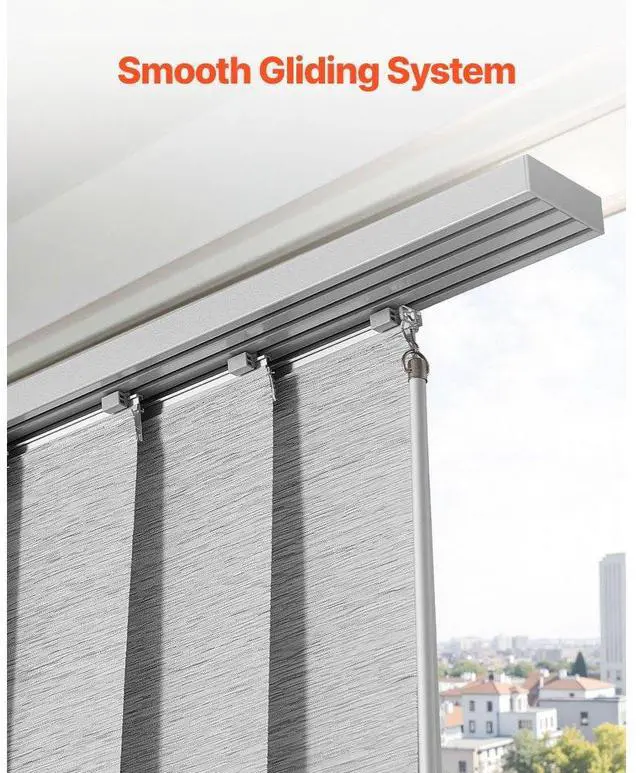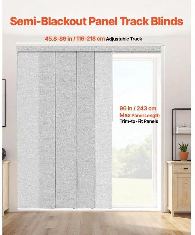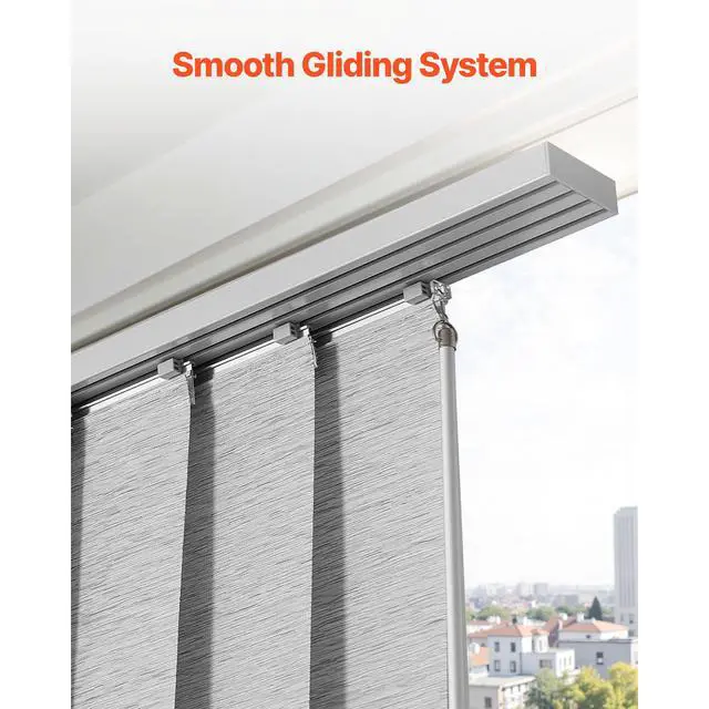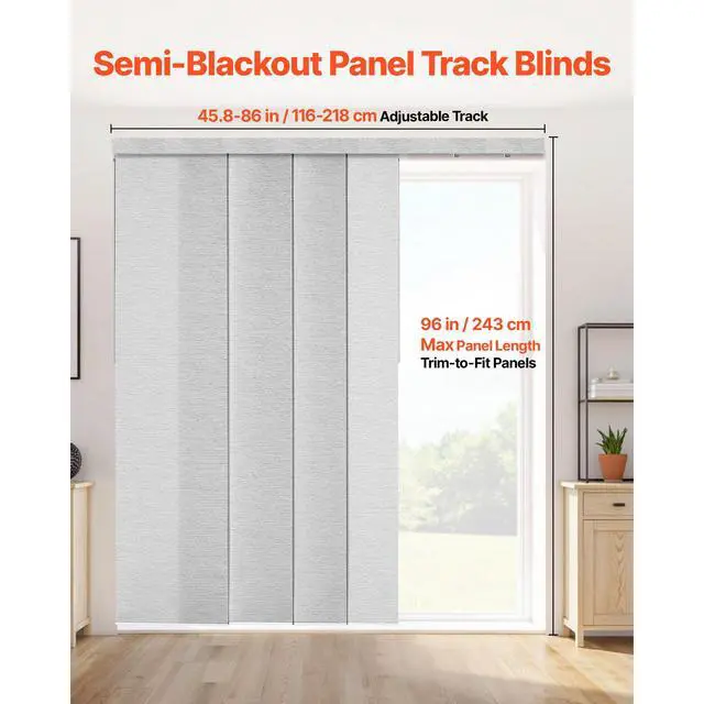 Panel Track Blinds Extendable Track from 45.8 in to 86 in Width Trimmable Gray Hidden Track Design Sliding System Weighted Bottom Guide Flexible Operation Versatile Applications Trim-to-Fit