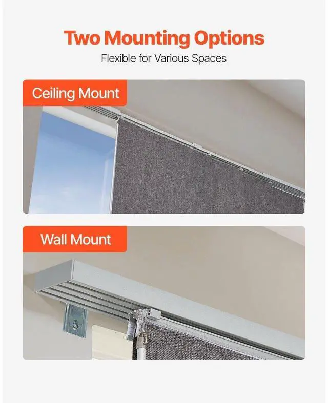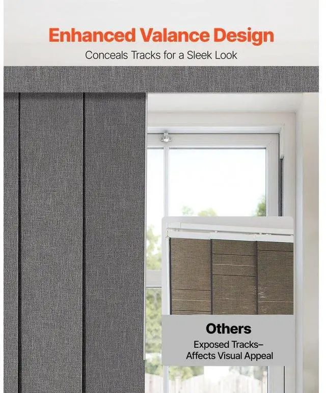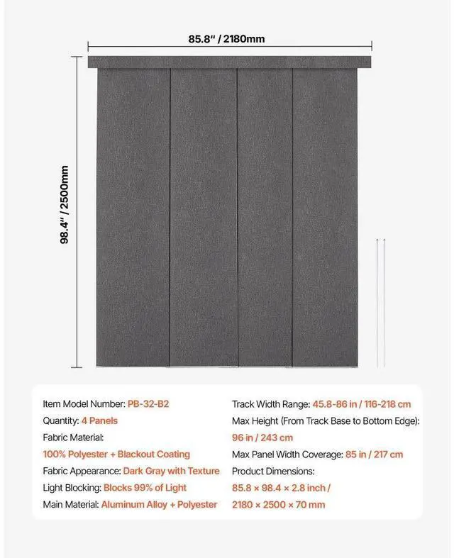 Panel Track Blinds Extendable Track from 45.8 in to 86 in W Trimmable Dark Gray Hidden Track Design Sliding System Weighted Bottom Guide Flexible Operation Versatile Applications Trim-to-Fit