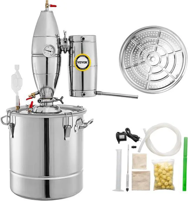 VEVOR 30L 7.9G al Water Alcohol Distiller 304 Stainless Steel Alcohol Distiller Home Kit Moonshine Wine Making Boiler with Thermometer (30L Distiller) 7.9 Gal Large Capacity Efficient Rectifying Tower Two-Stage Condenser Water Circulating Pump Complete Accessories Various Heating Methods