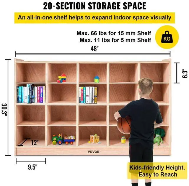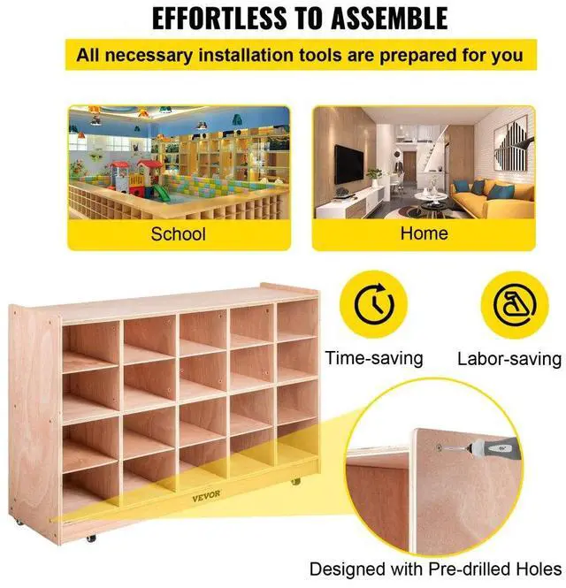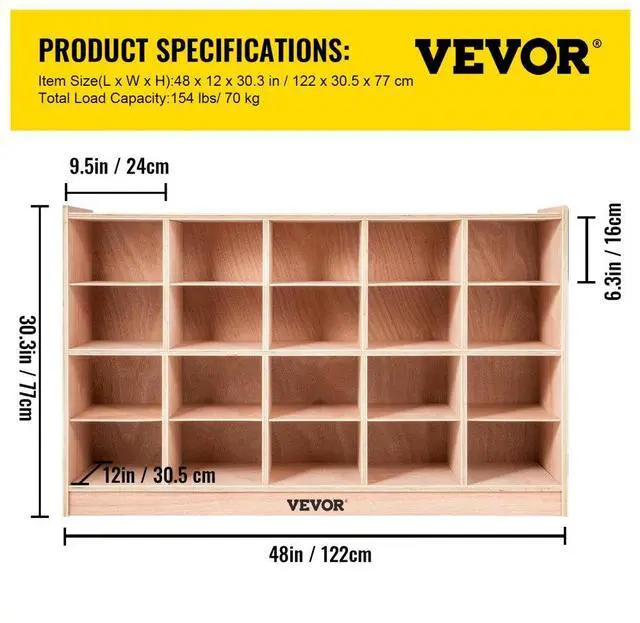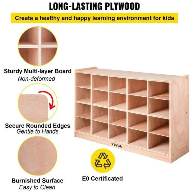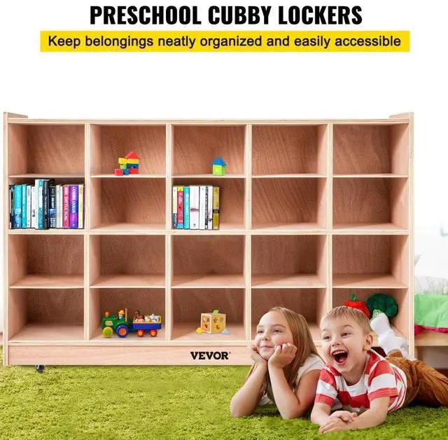 VEVOR Cubby Wooden Storage Unit 20 Cubby Storage Unit Classroom 30 Inch High Plywood Wooden Cubbies for Classroom Easy Access Safety Ensured Sturdy and Durable Versatile Storage Promote Independence Habit Wide