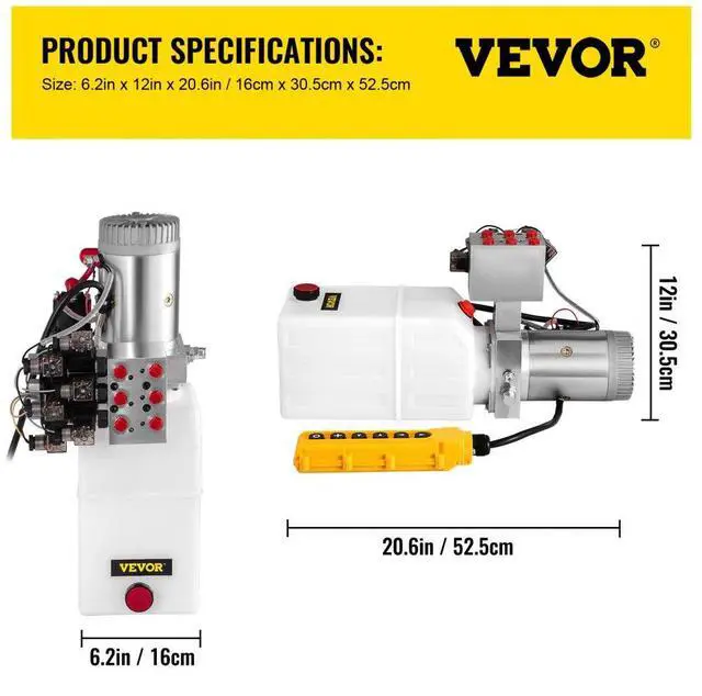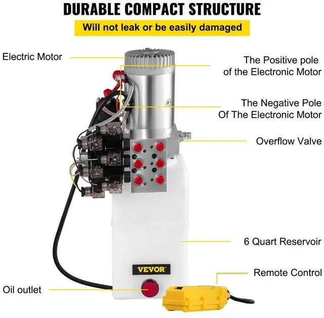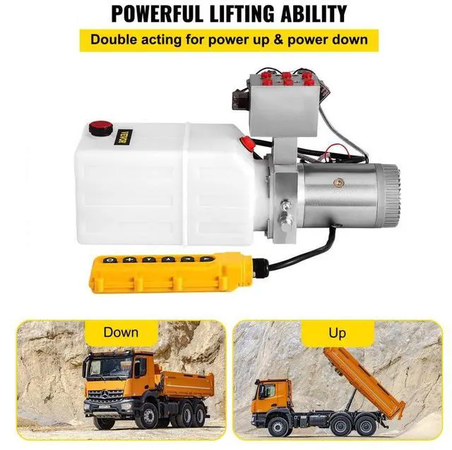 6 Way Hydraulic Pump 12v 6 Quart Double Acting Dump Trailer Control Kit Double-Acting Power Unit Convenient Design Quick StartLifting Long Lasting Simple Installation Wide