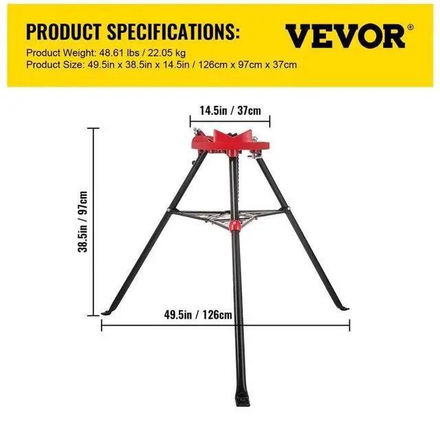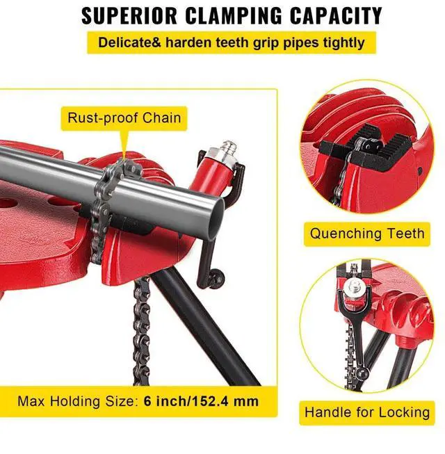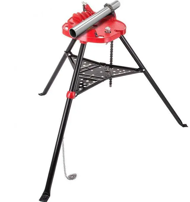 6" Tripod Pipe Chain Vise Stand w/ Steel Legs & Rubber Mounts bib Wide Pipe Capacity Portable & Folding Design Strengthen Teeth & Chain Tube Bending Features Tray for Tool Accessories Sturdy Steel