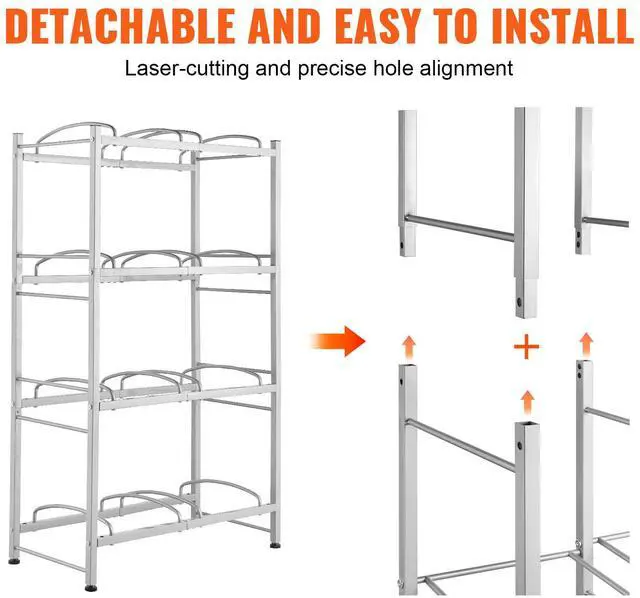 VEVOR 4 Tiers Water Jug Holder Double Row Water Bottle Rack for 8 Bottles Storage Detachable Heavy Duty Water Jug Organizer Stand for Home Office Kitchen Silver, Detachable Water Storage Shelf Organizer for Home Living Room Office