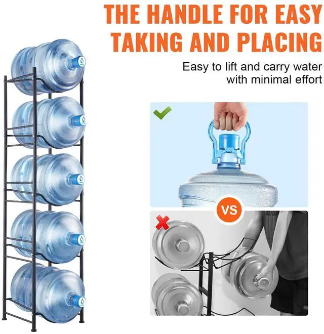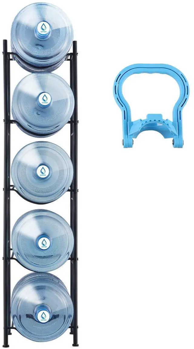 VEVOR 5 Tiers Water Jug Holder Single Row Water Bottle Rack for 5 Bottles Black