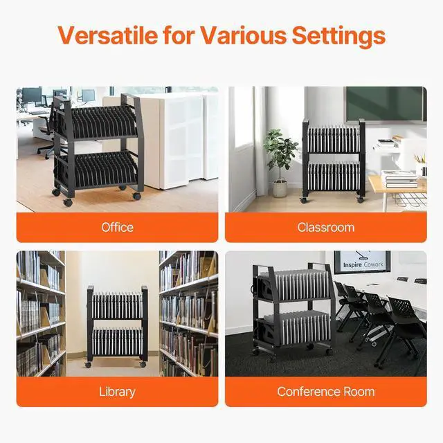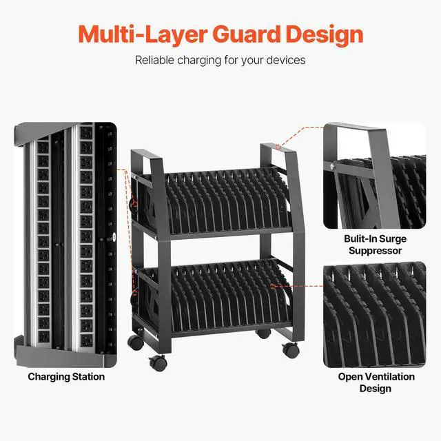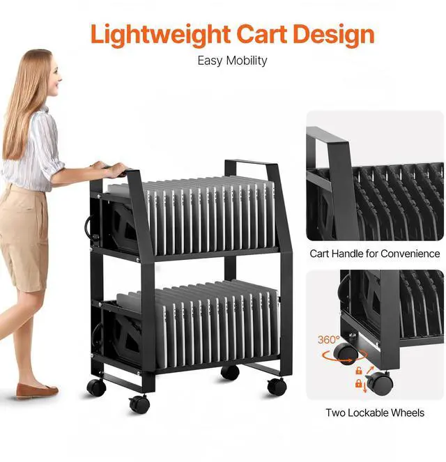 VEVOR Laptop Cart, 32 Device Mobile Open Charging Station, Up to 15.6 in Screen Size, Office and Classroom Mobile Charging Cart, for Chromebook, Tablet and Laptop