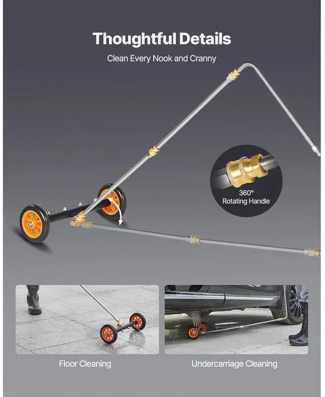 • 16" Pressure Washer Undercarriage Cleaner with 2 Wheels 2 Extended Wands