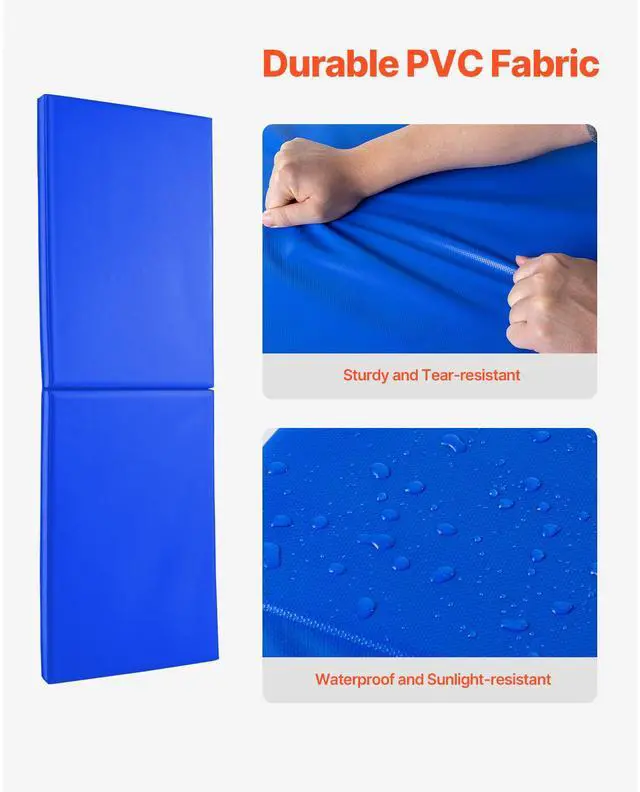 Folded Pad Dimensions: 35.43 x 23.62 x 3.94 inch / 900 x 600 x 100 mm,Color: Blue,Item Model Number: RL-V006,Unfolded Pad Dimensions: 71 x 24 x 2 inch / 1800 x 600 x 50 mm,Product Weight: 5.84 lbs / 2.65 kg,Material: PVC Mesh Fabric + Pearl Foam