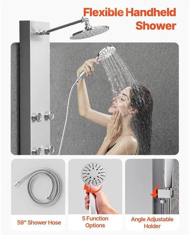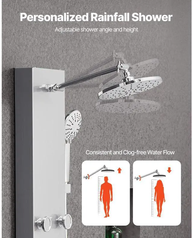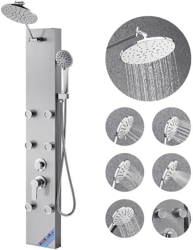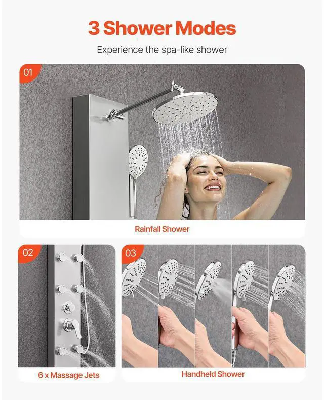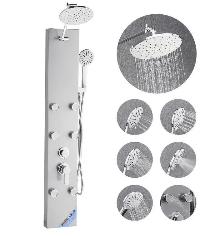 Shower Panel Tower System Stainless Steel Column Rainfall Head Massage Jet 3Mode