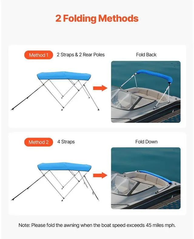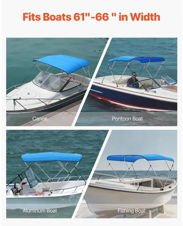 3 Bow Boat Bimini Tops 6'Lx(61"-66")W x 46"H Awning Canopy Pacific Blue