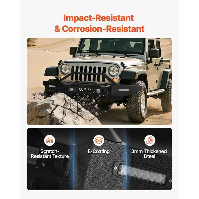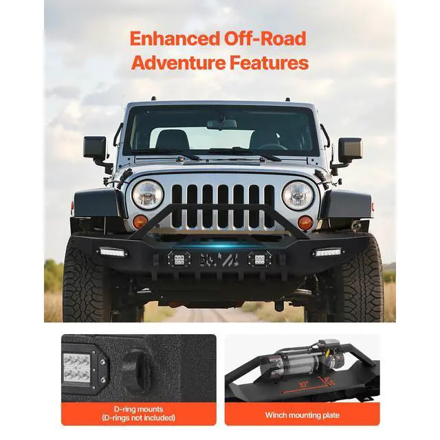 VEVOR Front Bumper Compatible with 1987-2006 Jeep Wrangler YJ TJ with LED Light