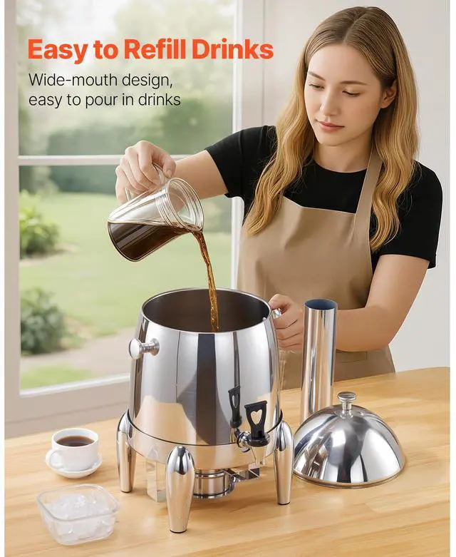 Stainless Steel Hot Tea & Cold Drink Dispenser 2.7 Gal Beverage Dispenser