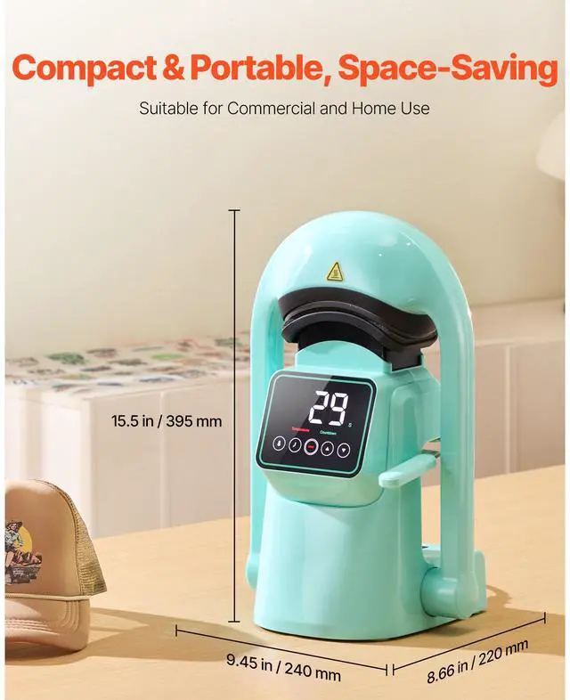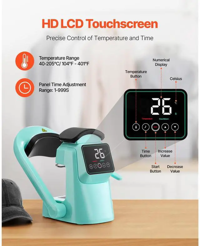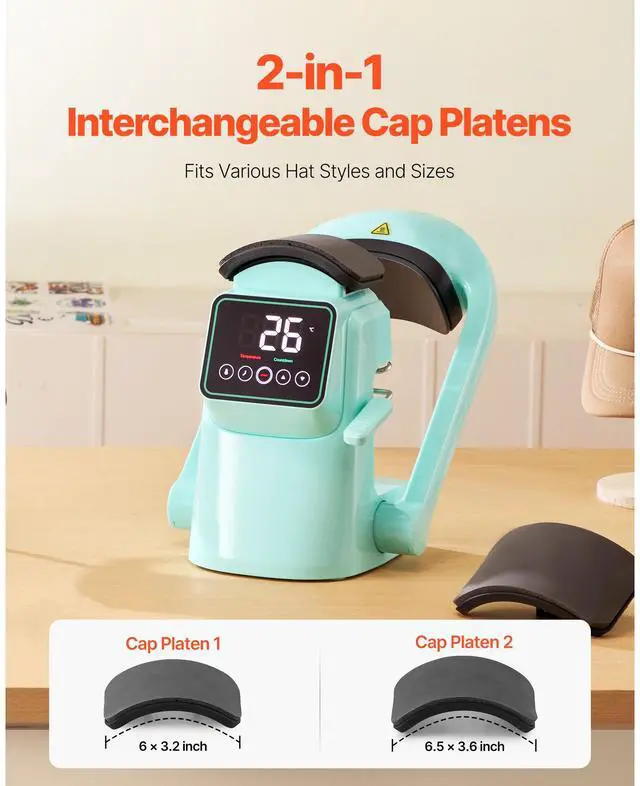 Cap Platen 2: 6.5 x 3.6 inch / 165.1 x 91.4 mm,Heating Plate Size: 6 x 3.54 inch / 152.4 x 89.9 mm,Color: Green,Item Model Number: F138,Temperature Range: 40-205 / 104 - 401,Cap Platen 1: 6 x 3.2 inch / 152.4 x 81.3 mm,Product Dimensions: 9.45 x 8.66 x 15.5 inch / 240 x 220 x 395 mm,Net Weight: 9.92 lbs / 4.5 kg,Power: 350W,Main Material: Plastic (ABS + PC)