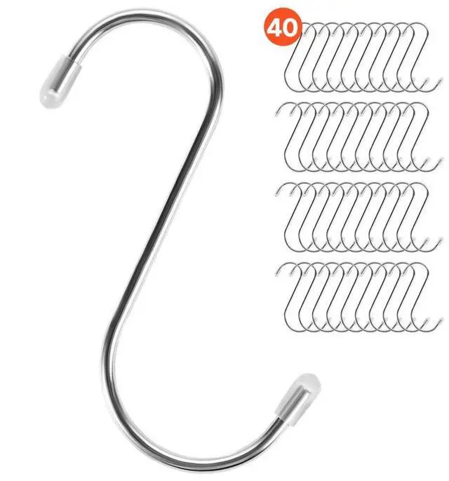S Hooks 40 Pack 22.05 LBS Load Capacity Stainless Steel Heavy Duty Metal Hooks