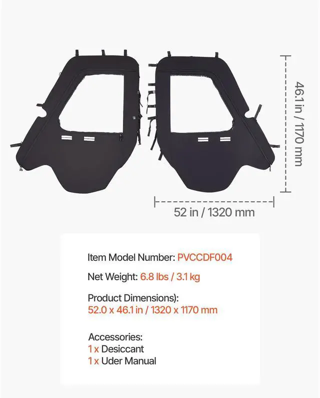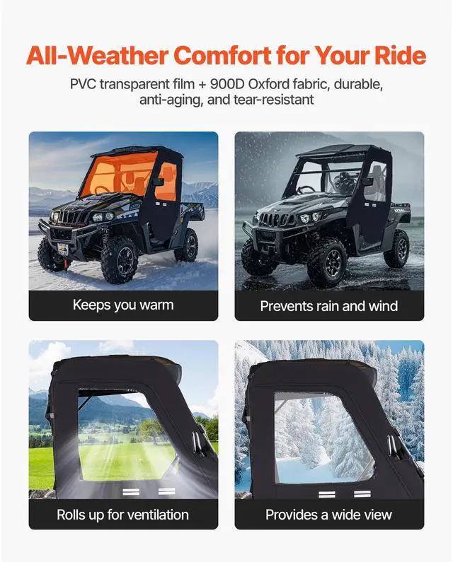 UTV Cab Enclosure Upper Doors Set Zipper for Hisun 500 700 and Axis 500 700