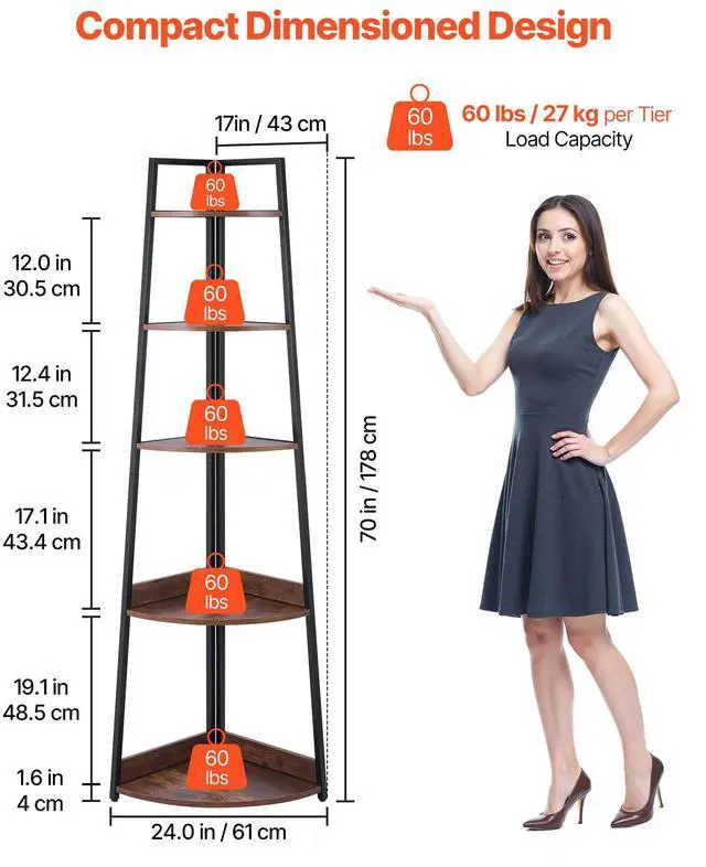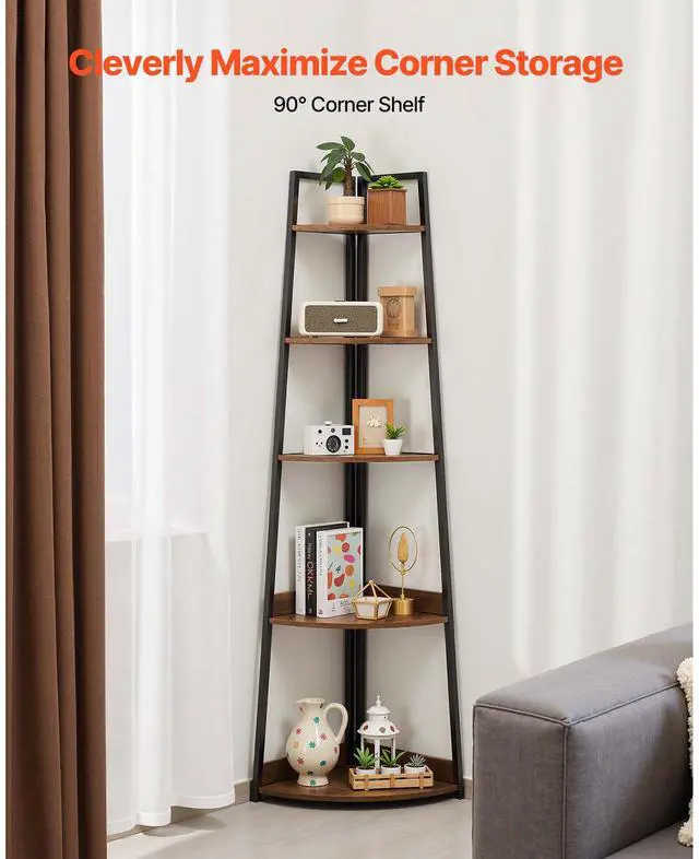 VEVOR 5 Tier Corner Shelf Tall Corner Bookshelf Plant Rack Wall Shelves Tower