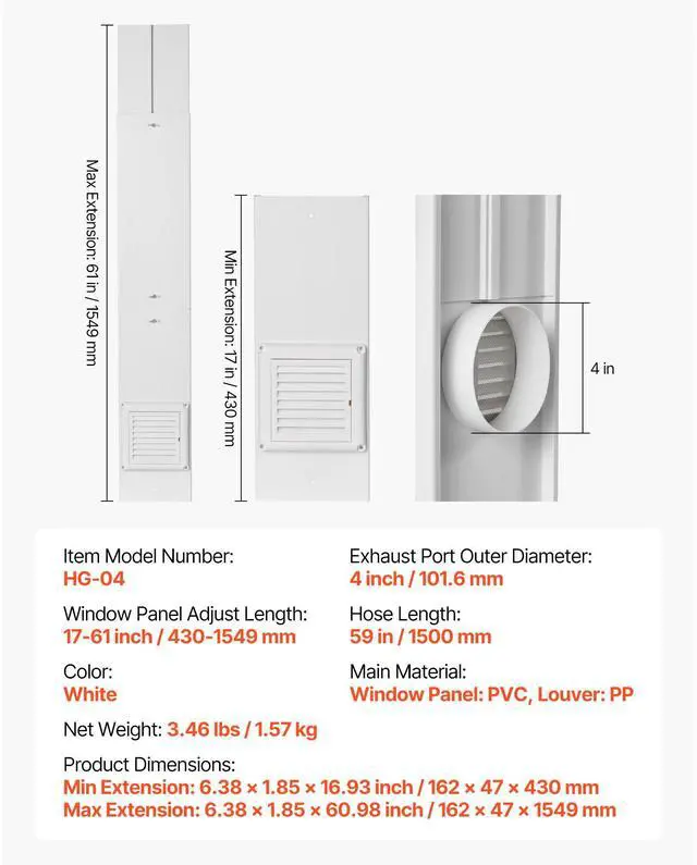 Window Panel Dimensions (Max Extension): 6.38 x 1.85 x 60.98 inch / 162x47x1549 mm