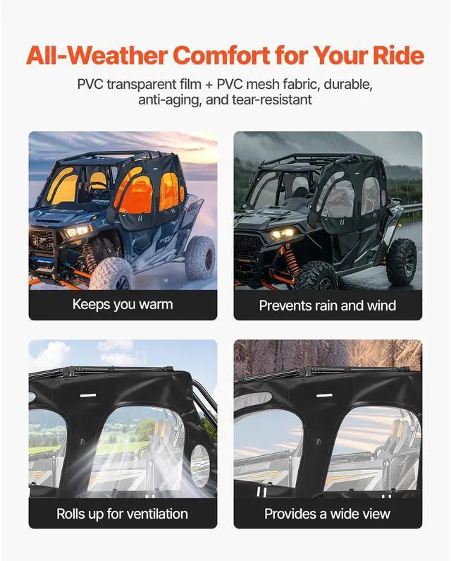 UTV Cab Enclosure Upper Doors Zipper for Polaris RZR XP4 1000/Turbo 2014-2023