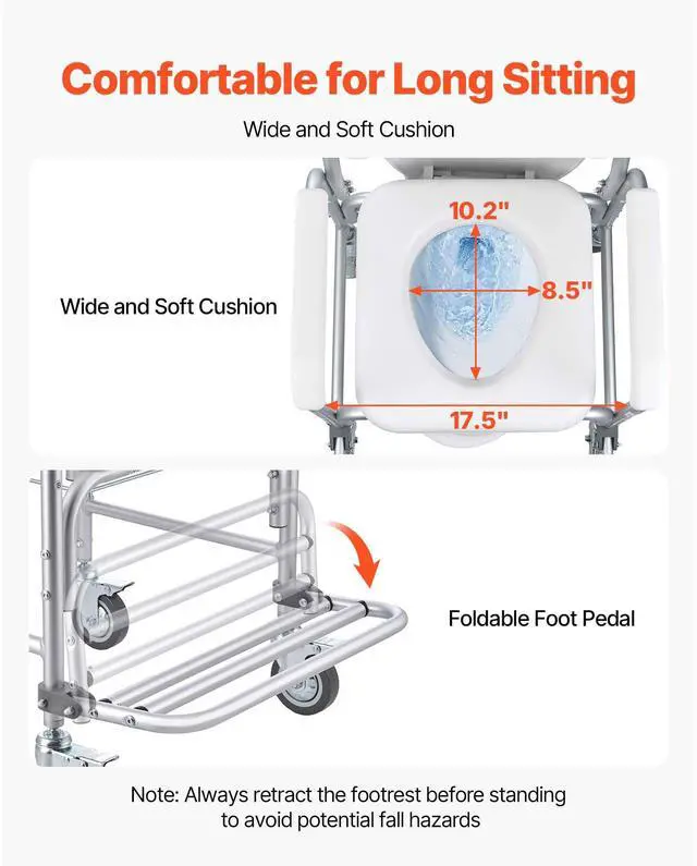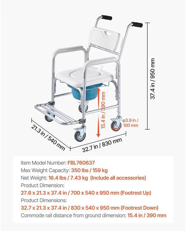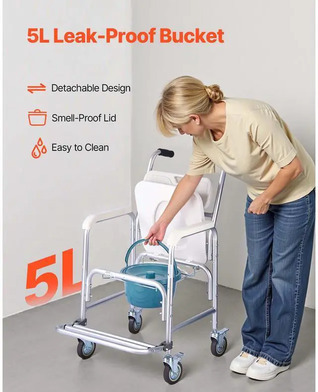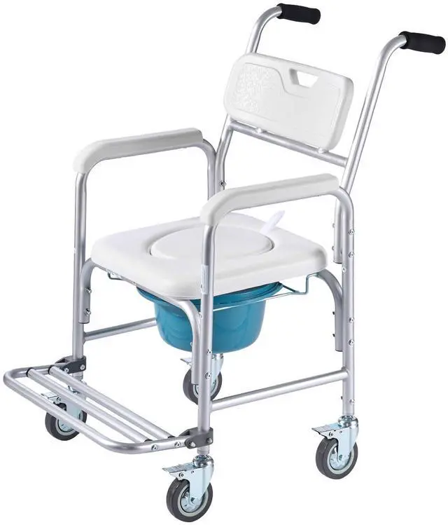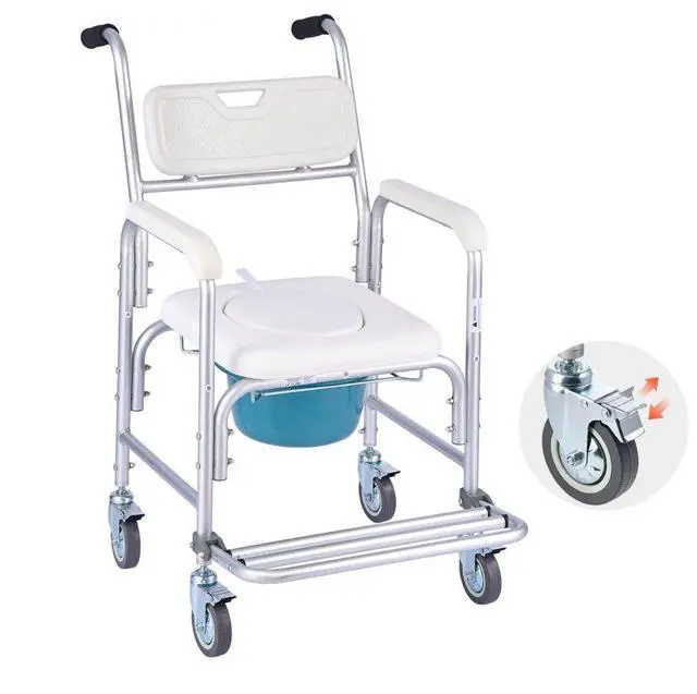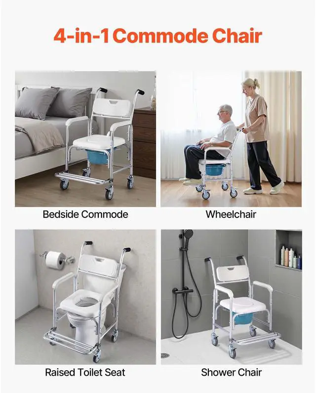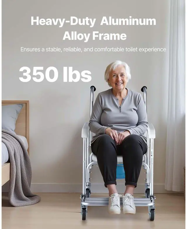 Bedside Commode Chair with 4 Wheels 4-in-1 Raised Toilet Seat 350 lbs