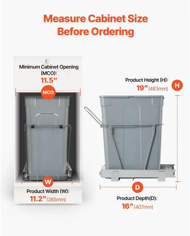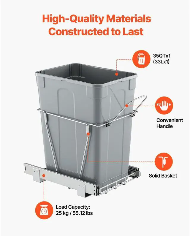 35QT Pullout Waste Container Under Cabinet Kitchen Garbage Bin Trash Can