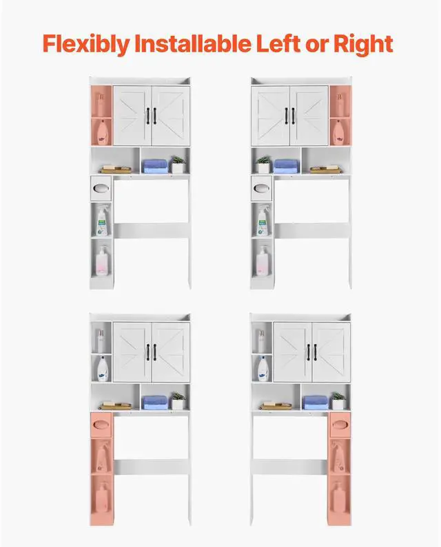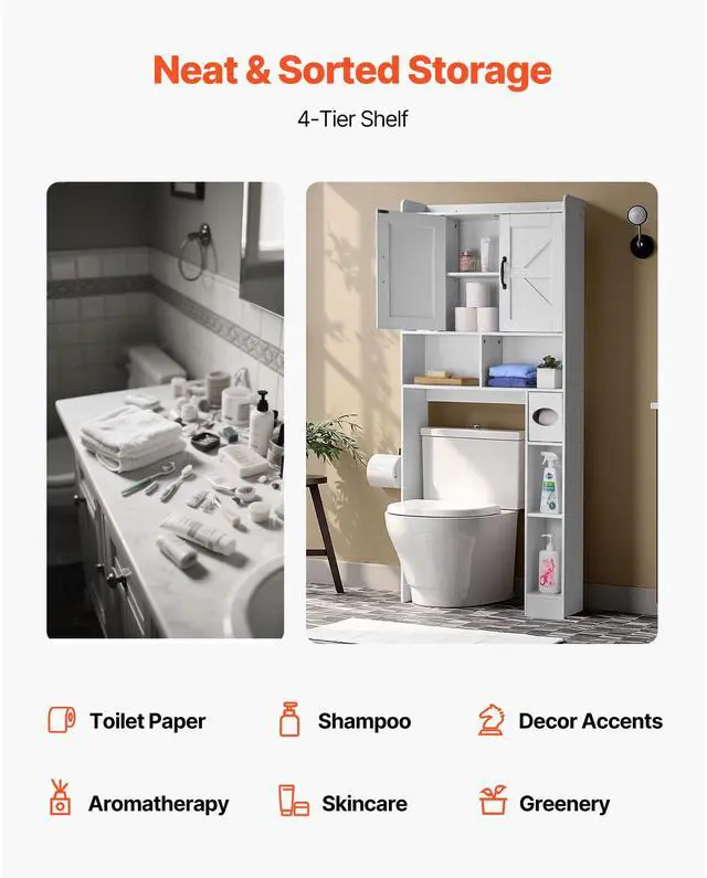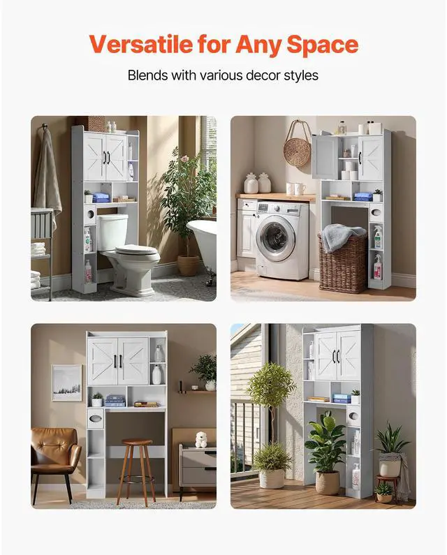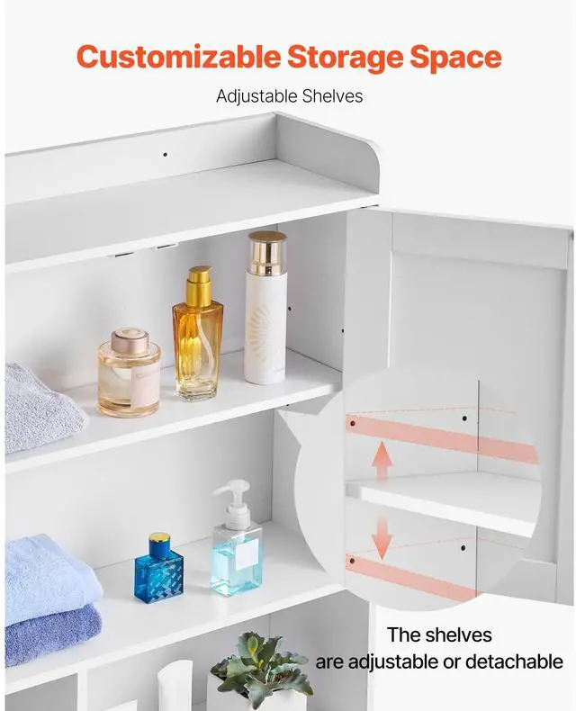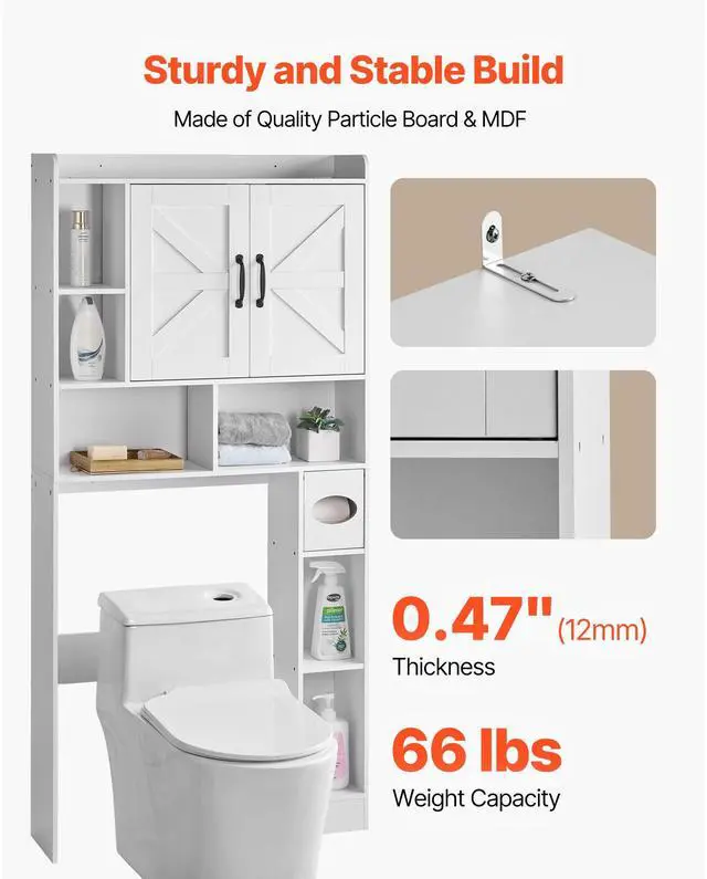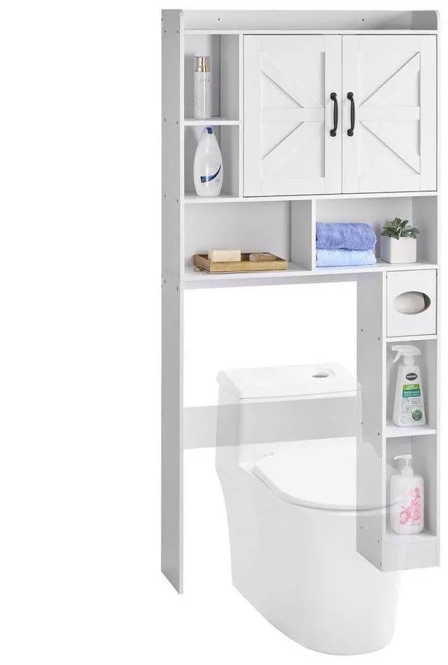 Over The Toilet Storage Cabinet for Bathroom with Adjustable Shelf White 66" H
