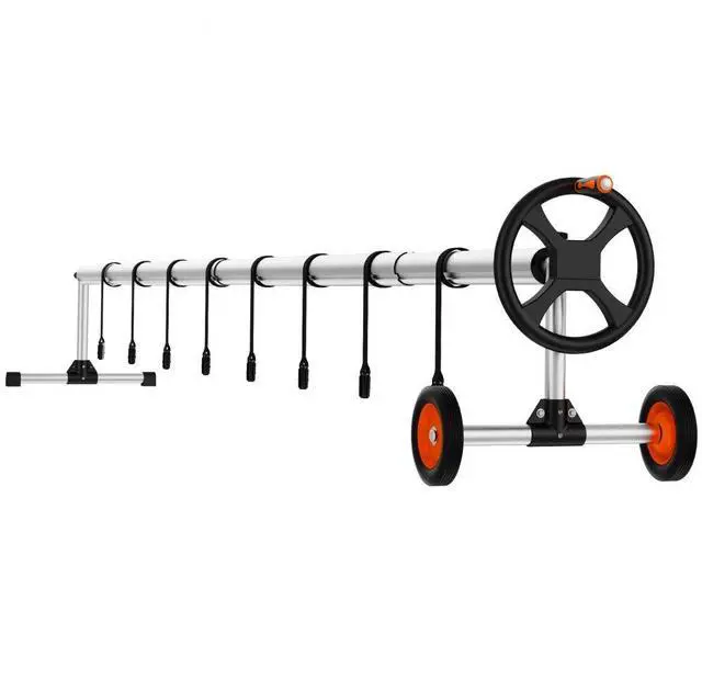 VEVOR Pool Cover Reel, Aluminum Solar Cover Reel 18 ft, Inground Swimming Pool Cover Reel Set with Rubber Wheels and Sandbags, Fits for 4-18 ft Width Swimming Pools