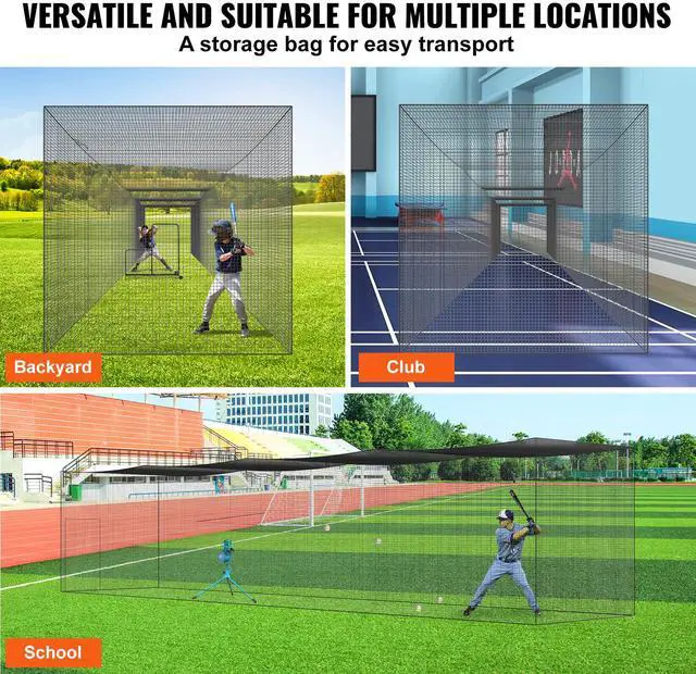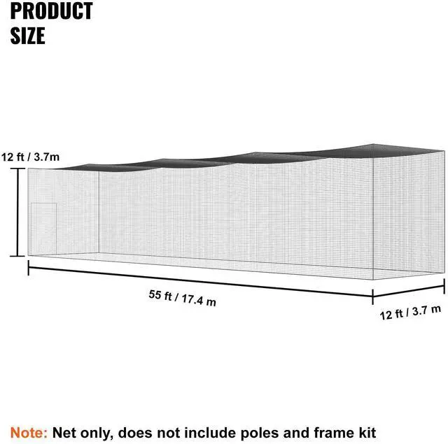 VEVOR Baseball Batting Netting, Professional Softball Baseball Batting Hitting Training Net, Practice Portable Pitching Cage Net with Door & Carry Bag, Heavy Duty Enclosed PE Netting, 55FT (NET ONLY)