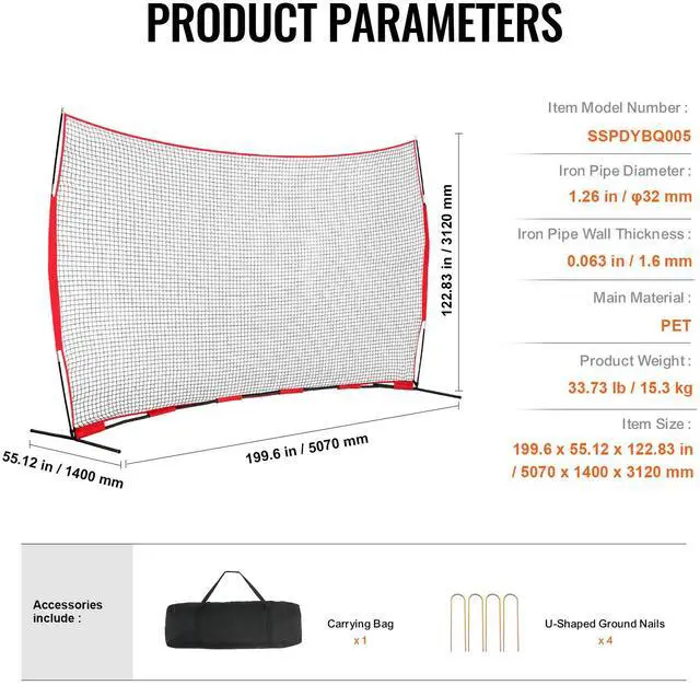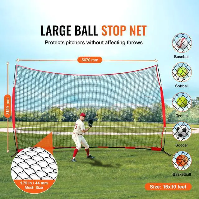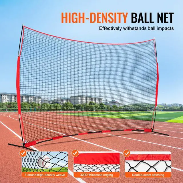 VEVOR Barricade Backstop Net, 16x10 ft Ball Sports Barrier Netting, Portable Practice Equipment with Carry Bag, Protection Screen for Baseball Softball Soccer Training, for Backyard