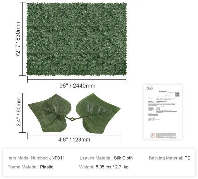 VEVOR Ivy Privacy Fence, 96 x 72 in Artificial Green Wall Screen, Greenery Ivy Fence with Mesh Cloth Backing and Strengthened Joint, Faux Hedges Vine Leaf Decoration for Outdoor Garden, Yard, Balcony