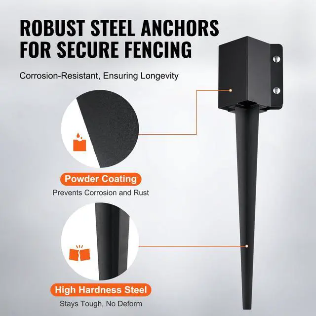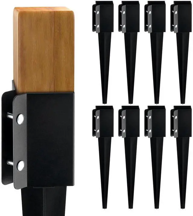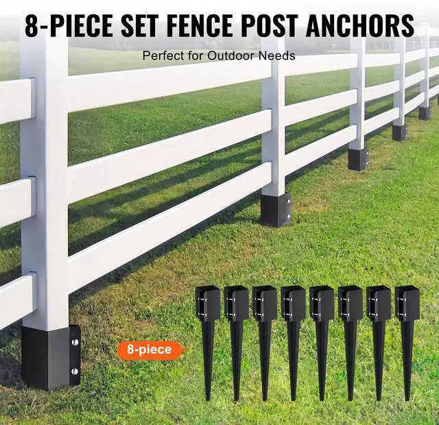 VEVOR Fence Post Anchor Ground Spike, 8 Pack 24 x 4 x 4 Inches Outer Diameter (Inner Diameter 3.5 x3.5 Inches), Metal Black Powder Coated Post Stake Ground, for Mailbox Deck Garden Railing