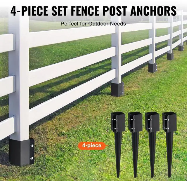 VEVOR Fence Post Anchor Ground Spike, 4 Pack 24 x 4 x 4 Inches Outer Diameter (Inner Diameter 3.5 x3.5 Inches), Metal Black Powder Coated Post Stake Ground, for Mailbox Deck Garden Railing