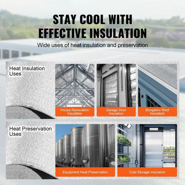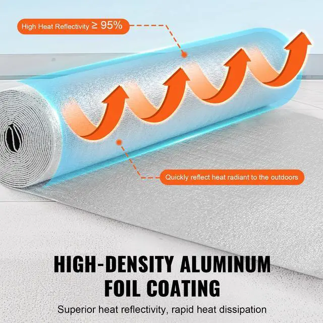 VEVOR Double Reflective Insulation Roll Foam Core Radiant Barrier 300 in x 48 in x 1/8 in