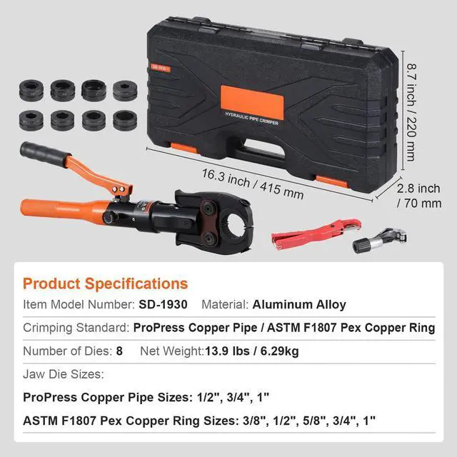 VEVOR Copper Tube Fittings Crimping Tool with 8 Jaws Pipe Cutter 360° Rotatable
