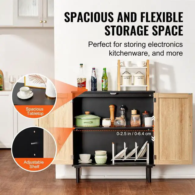 VEVOR Rattan Cabinet, Rattan Storage Cabinet 31.5inch with 2 Magnetic Doors and Adjustable Shelves, Sideboard Buffet Cabinet for Hallway, Entryway, Living Room, or Kitchen, Black
