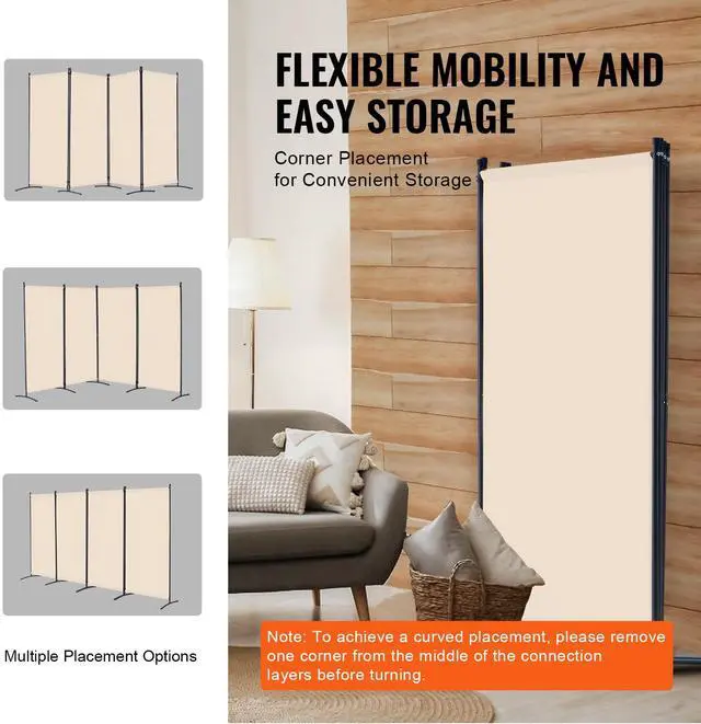 VEVOR Room Divider, 4 Panel Room Divider, Folding Privacy Screen and Portable Partition Divider for Room Separation, Freestanding Room Partitions for Office, Bedroom, Living Room, Beige