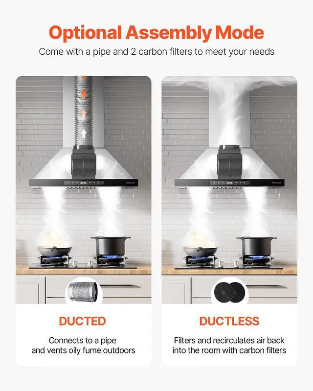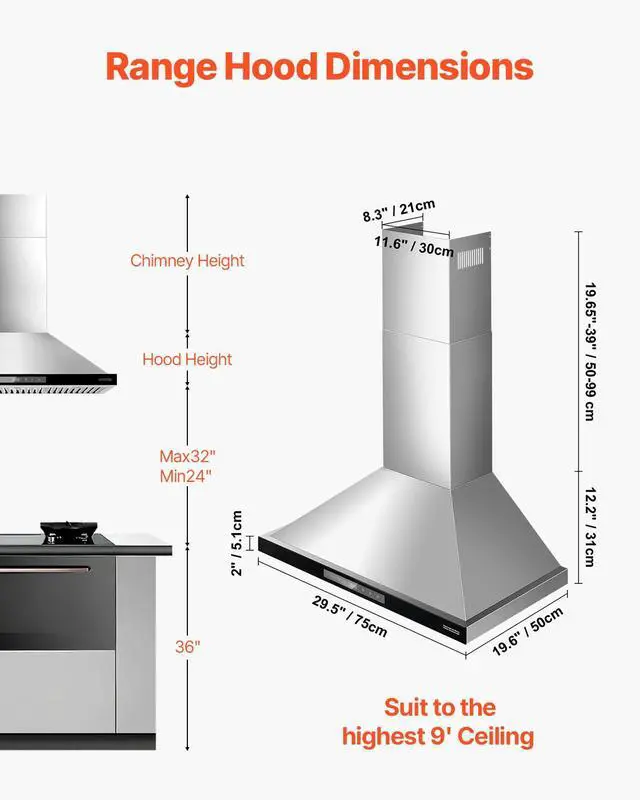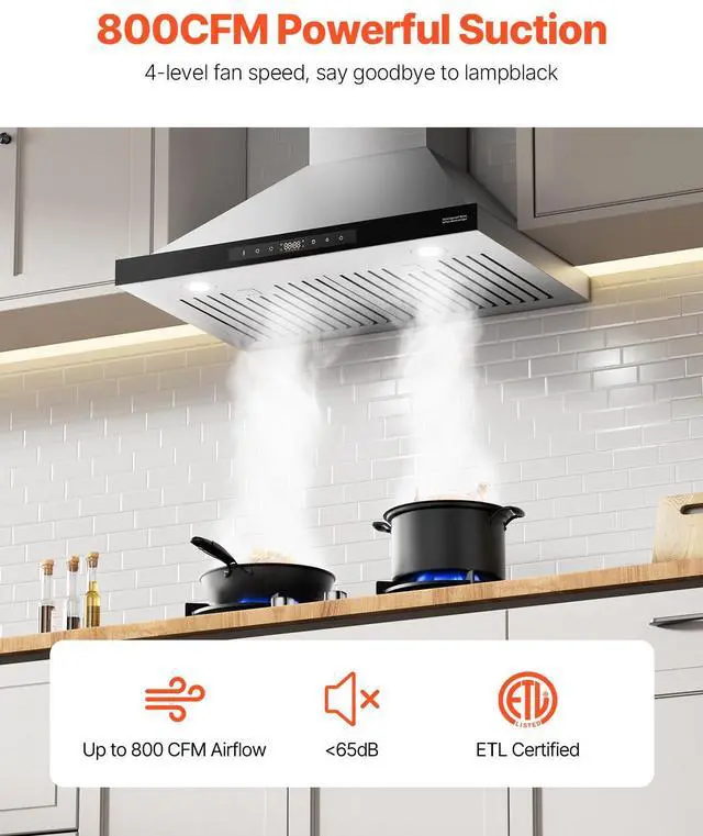 VEVOR 30" Wall Mount Range Hood Ceiling Mount Vent 800CFM Gesture & Touch Control