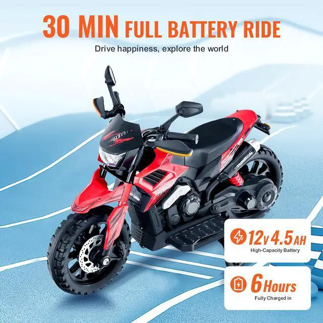 Christmas Gift! Kids Ride on Motorcycle 12V Electric Motorbike with LED for Kids Aged 3+