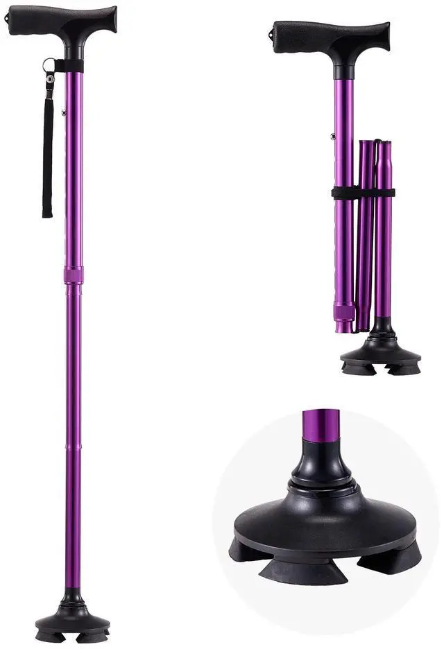 Walking Cane Folding Walking Stick with 8-Level Height & 4-Pronged Pivoting Base