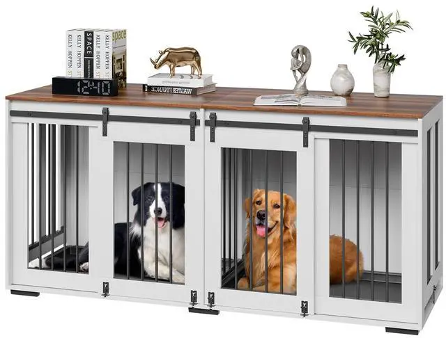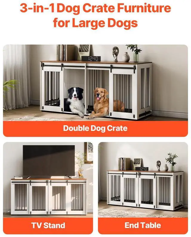 VEVOR Dog Crate Furniture 72 in Indoor Wooden Dog Kennel with Tray Heavy Duty