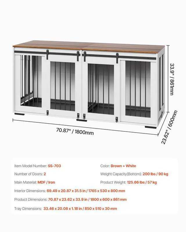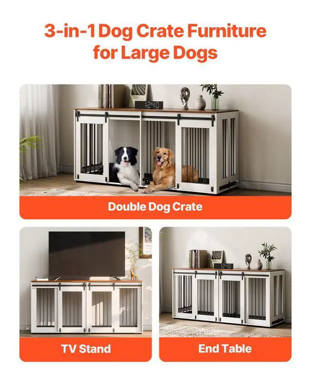 VEVOR Dog Crate Furniture 72 in Indoor Wooden Dog Kennel with Tray Heavy Duty