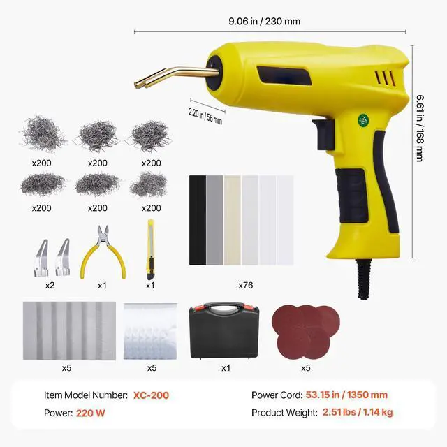Plastic Welder 220W Plastic Welder Gun Kit with 1200 Staples & 76 Rods