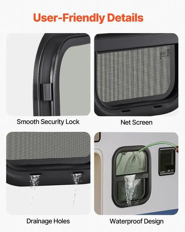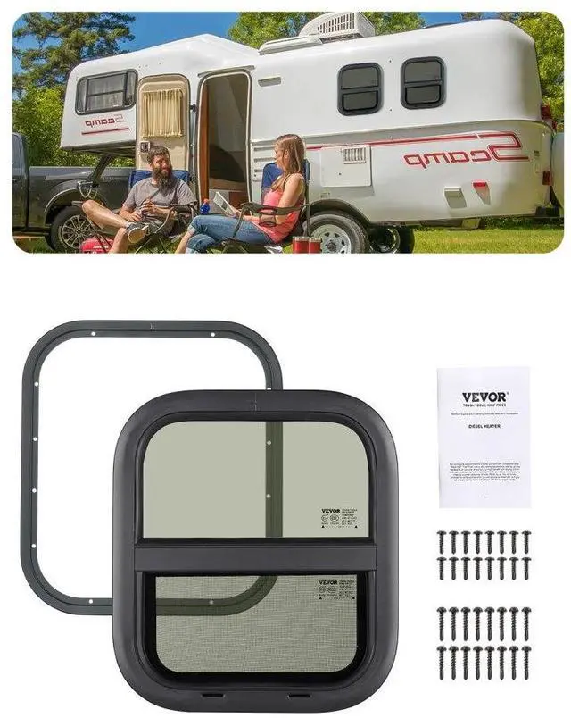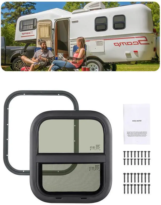 Vertical RV Window 14" W x 16" H Tinted Sliding RV Window & Net Screen Trim Ring