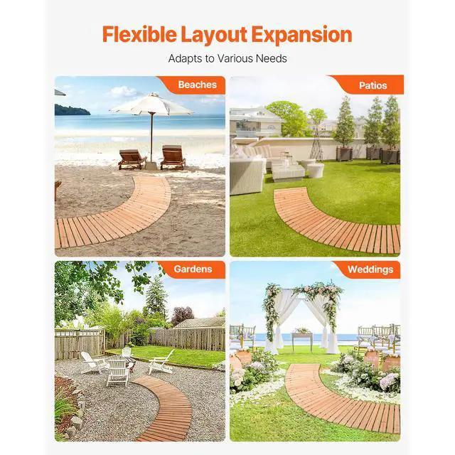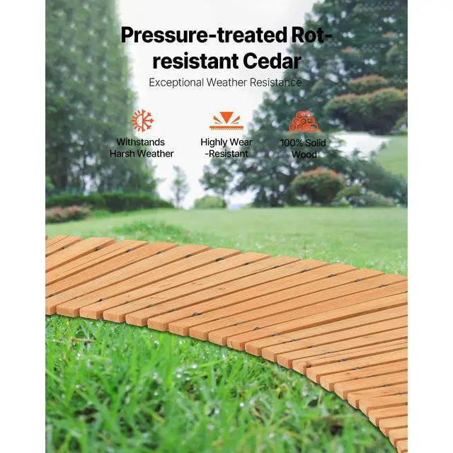 8 ft L x 17 in W Curved Wooden Garden Pathway Roll Out Garden Walkway