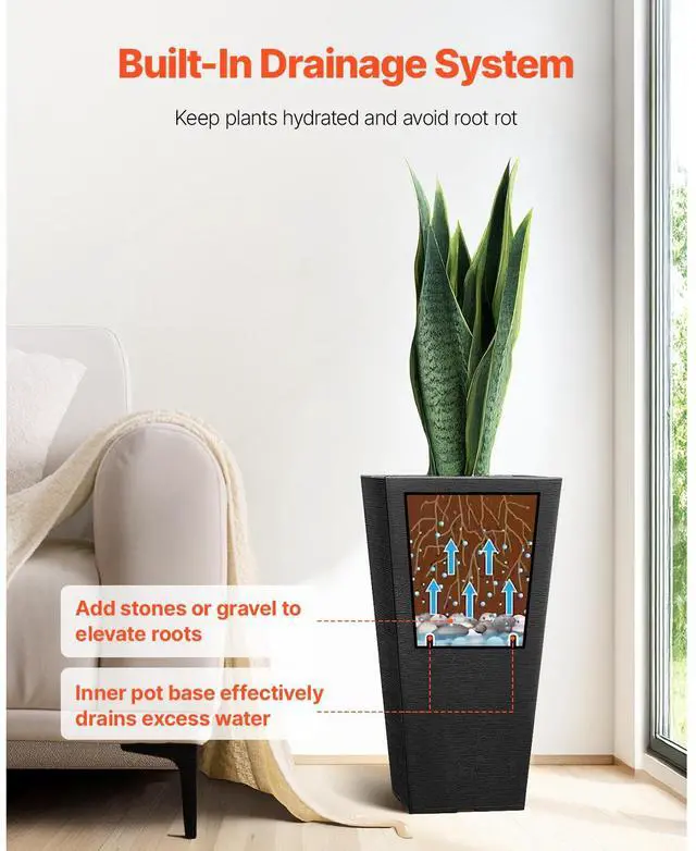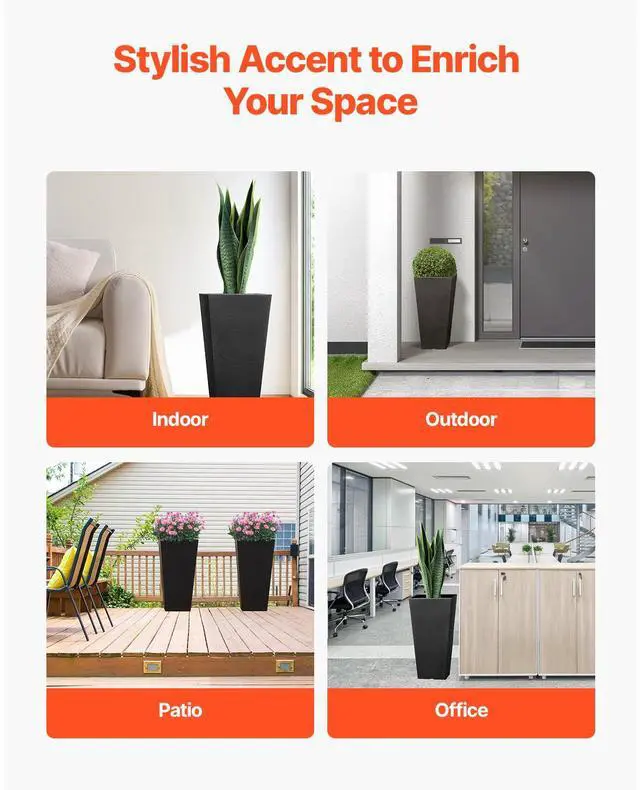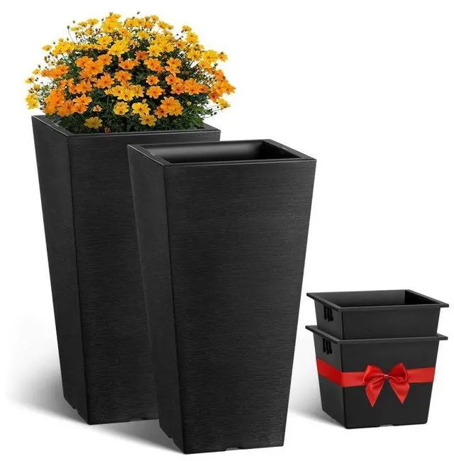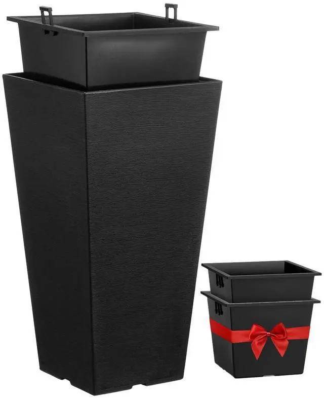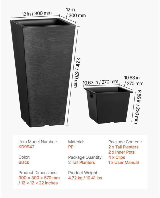 Color: Black,Item Model Number: KD9942,Product Weight: 4.72 kg / 10.41 lbs,Material: PP,Package Quantity: 2 Tall Planters,Product Dimensions: 300 x 300 x 570 mm / 12 x 12 x 22 inches