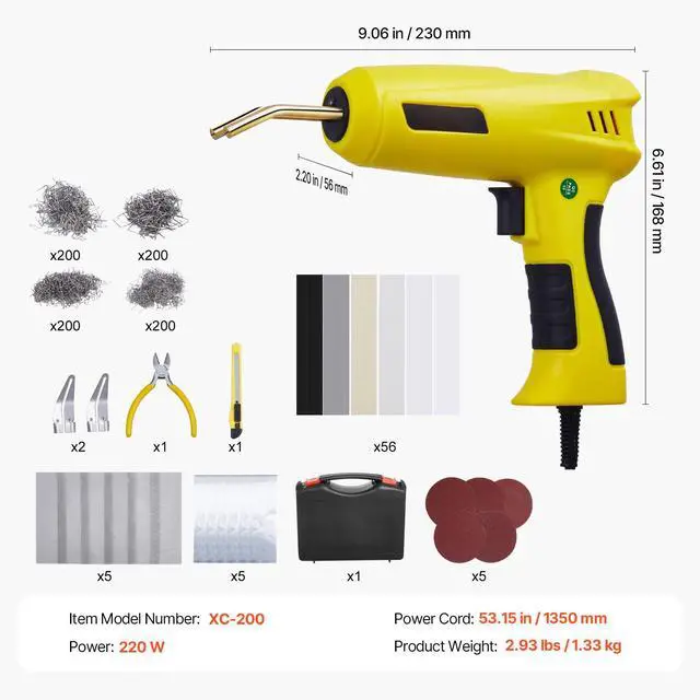 Plastic Welder 220W Plastic Welder Gun Kit with 800 Staples & 56 Rods