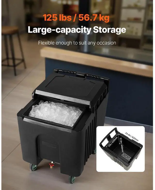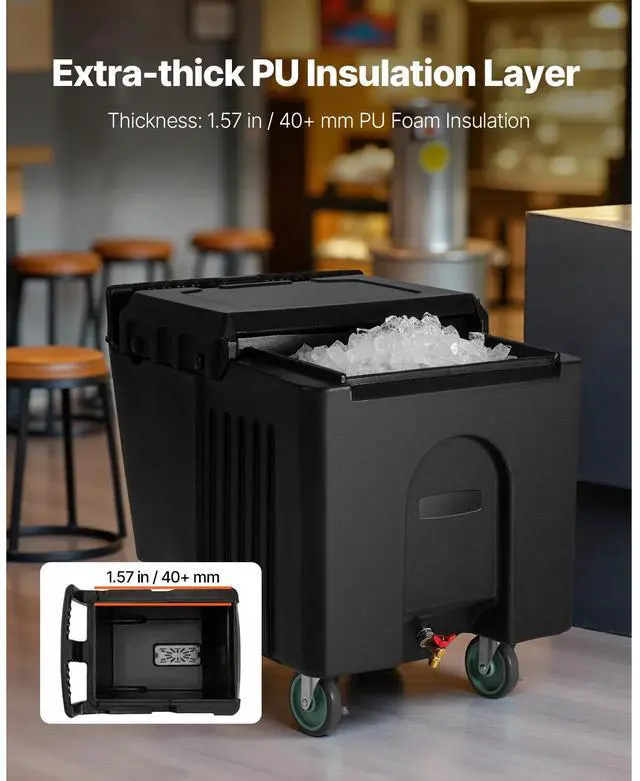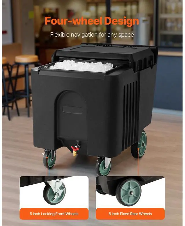 • VEVOR Commercial Ice Bin 61.6 L Portable Ice Caddy with Sliding Lid and Four Wheels