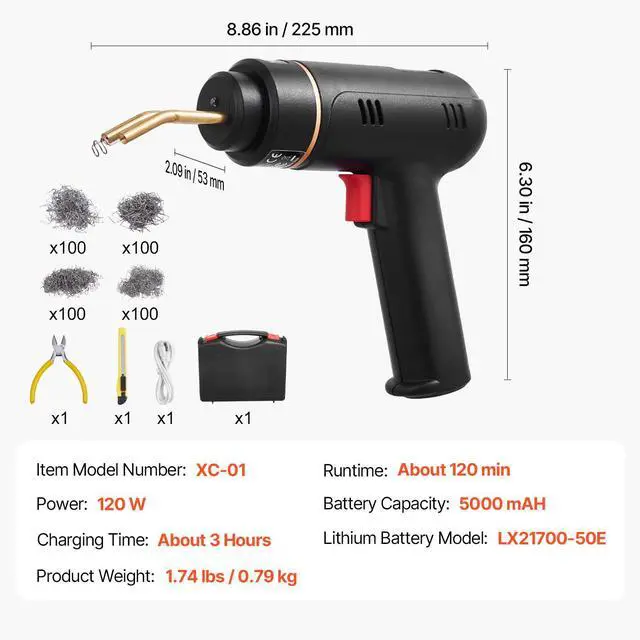 Cordless Plastic Welder Gun 120W Plastic Welder Kit with 400 Staples