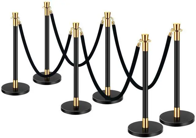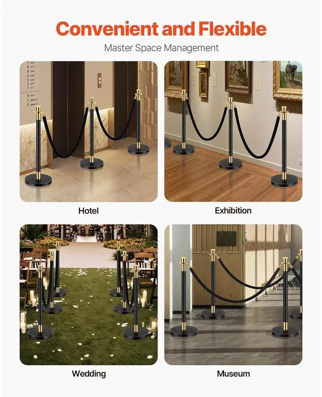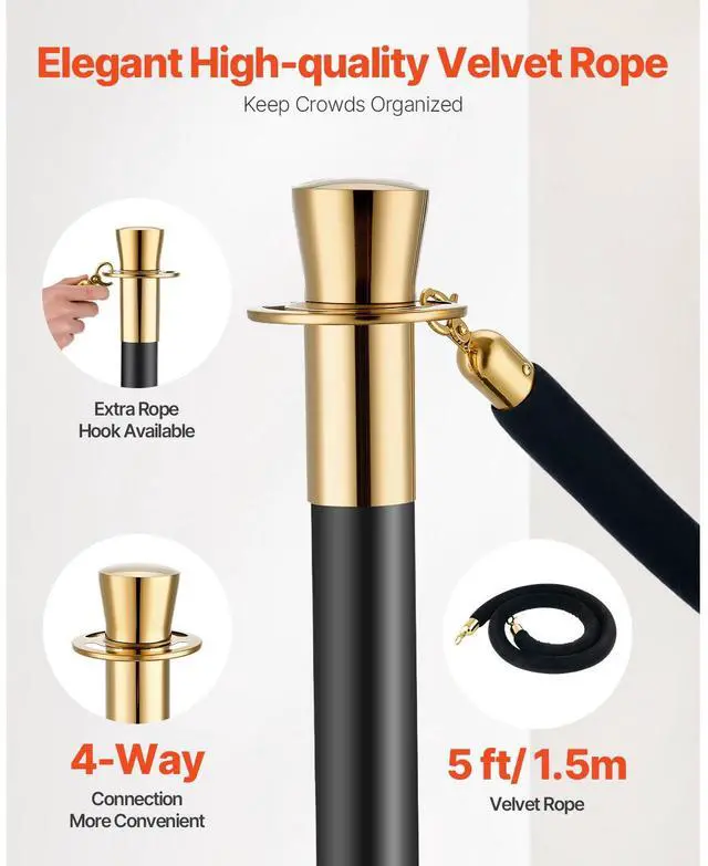 VEVOR Stanchions and Velvet Ropes, 6 Pcs Crowd Control Barriers with 4 Black Velvet Ropes, Stainless Steel Stanchion Post Queue with Sand Injection Hollow Base for Theater, Wedding, Party Supplies